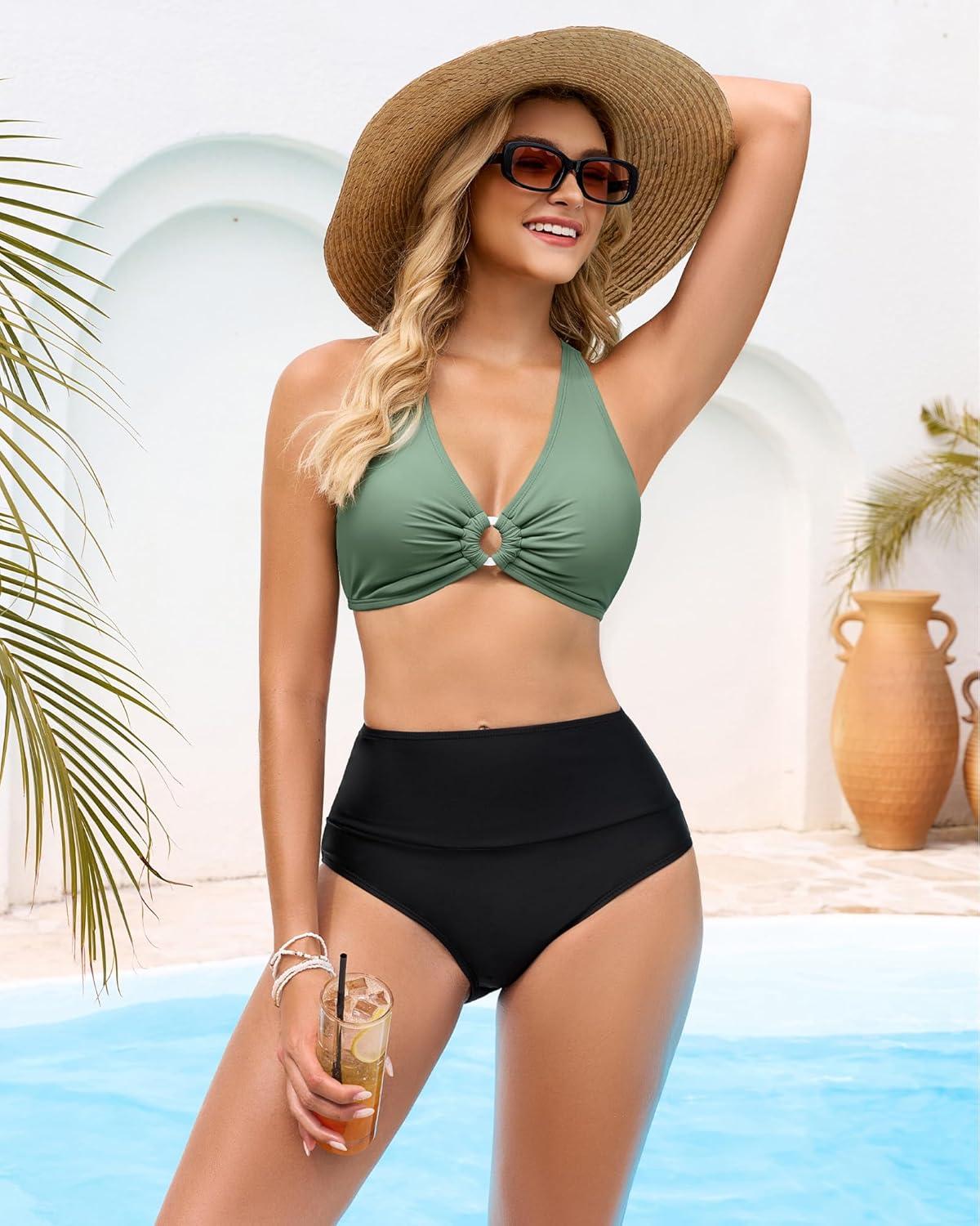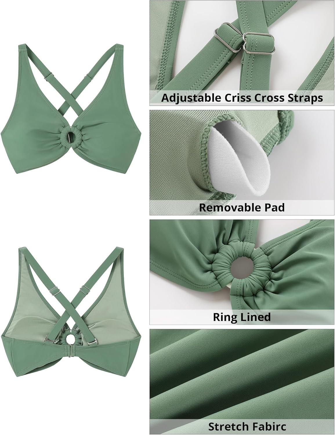 GRAPENT Bikini Top for Women Ruched O Ring Padded Adjustable Straps Bathing Suits Swim Tops Only Beach Vacation Clothes(Iceberg Green)