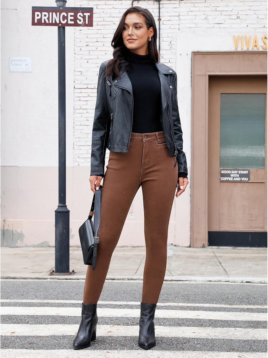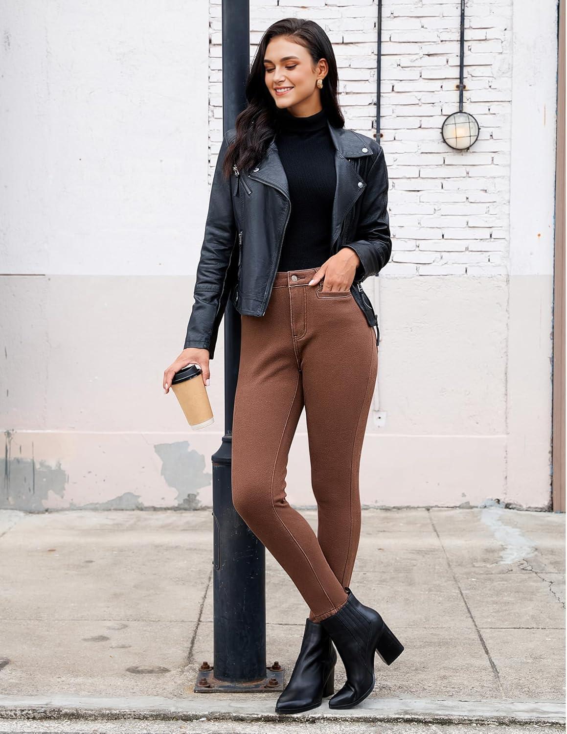 imageGRAPENT Fleece Lined Jeans for Women High Waisted Skinny Welt Pocket Winter Stretchy Denim Pants Warm Thermal JeggingsCappuccino