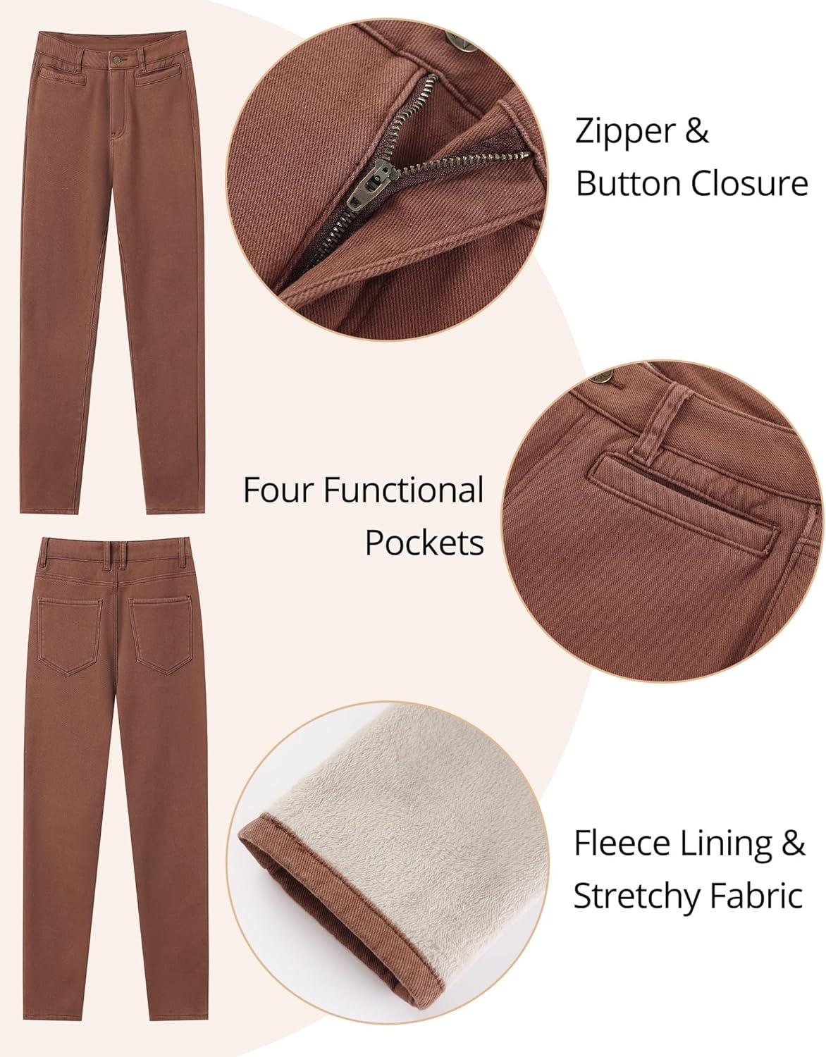 GRAPENT Fleece Lined Jeans for Women High Waisted Skinny Welt Pocket Winter Stretchy Denim Pants Warm Thermal Jeggings(Cappuccino)