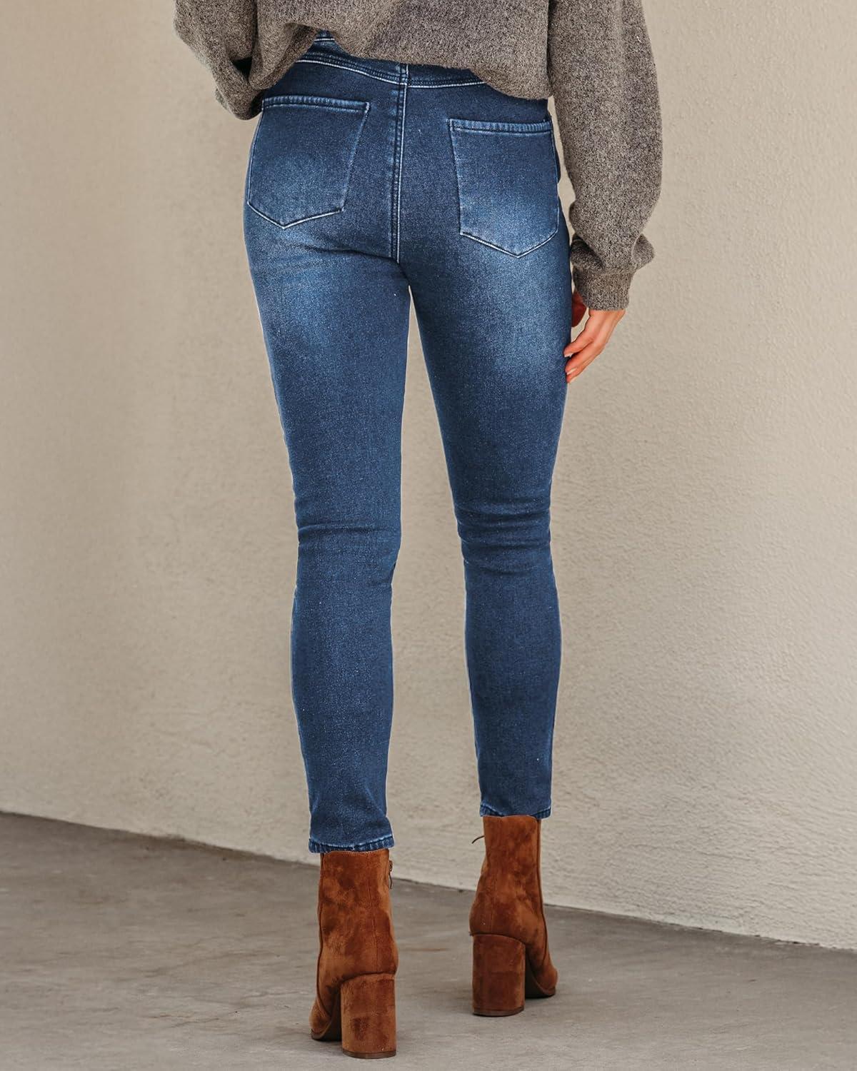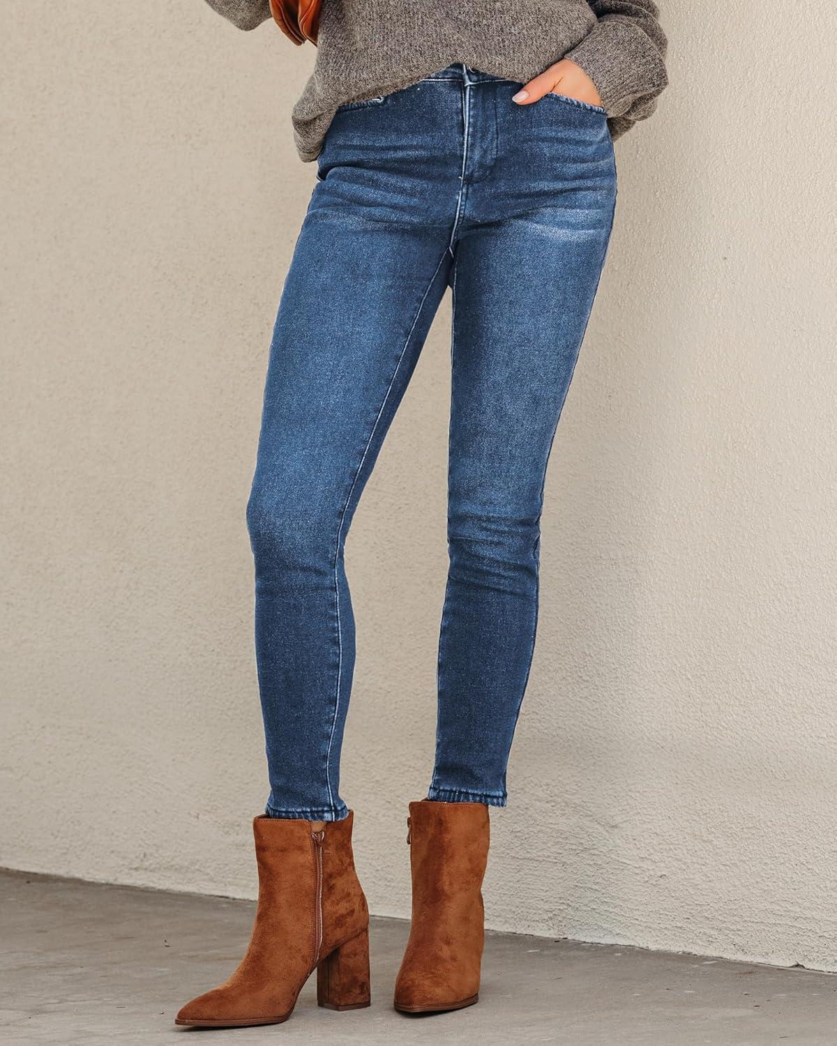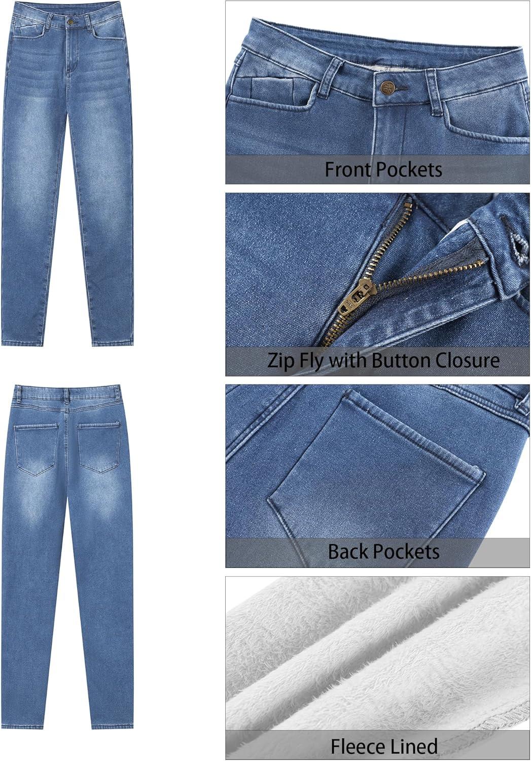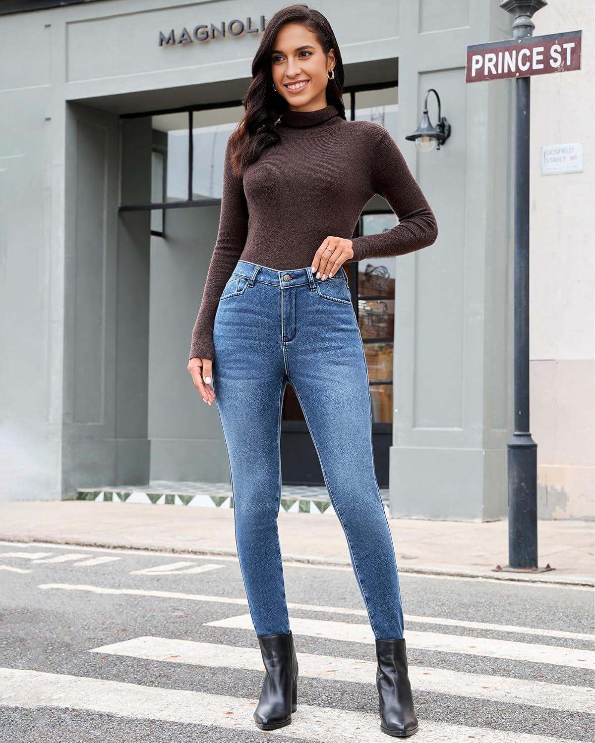 GRAPENT Fleece Lined Jeans for Women Trendy High Waisted Skinny Winter Stretchy Denim Pants Ankle Warm Thermal Jeggings(Indigo Skyblue)