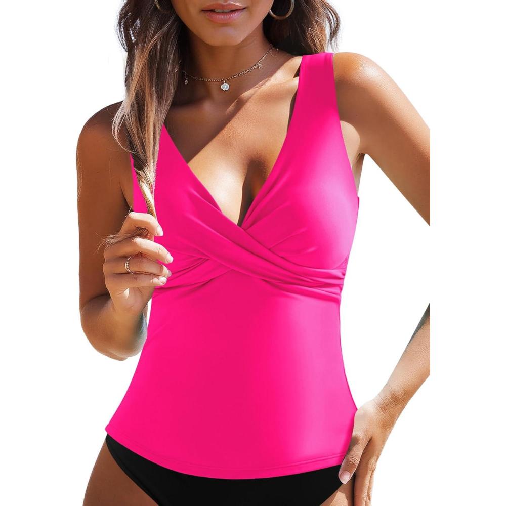 GRAPENT Tankini Tops for Women Cross Over Adjustable Straps Padded Modest Swimsuits Swimwear Bathing Suit Swim Top Only(Neon Pink)
