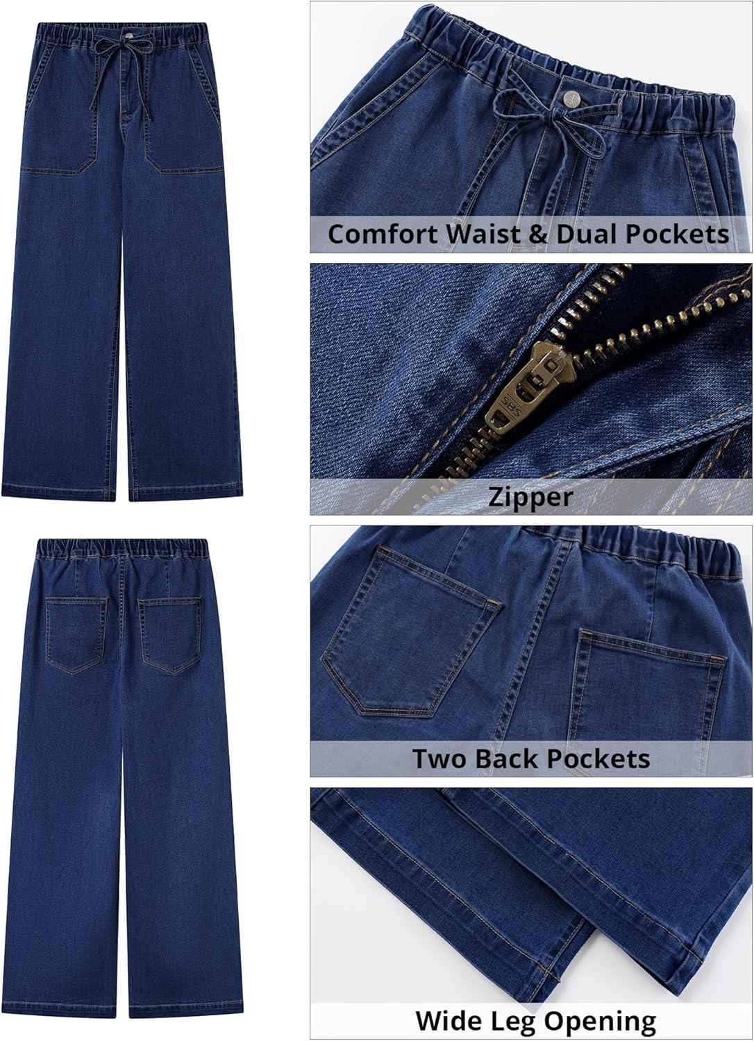 GRAPENT Wide Leg Jeans for Women Trendy High Waisted Drawstring Tie Elastic Waist Stretchy Denim Pants Trouser Jeans(Medium Blue)